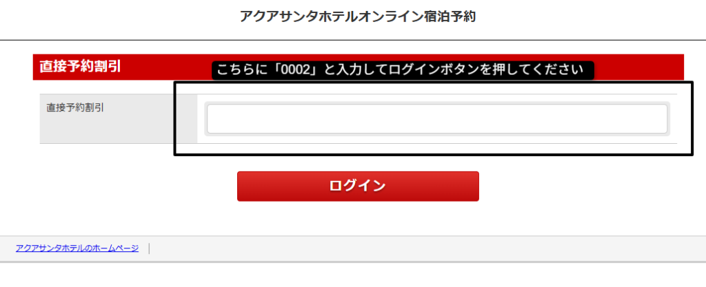 プラン検索、ご予約は0002と入力してログイン!